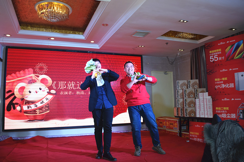 簽到篇 看到嗎?大獎(jiǎng)已經(jīng)準(zhǔn)備好了!! 美酒美食上桌 簽到了小伙伴們?。?/p> 一聲簽到了,瞬間排起長(zhǎng)龍! 美麗帥氣的主持人準(zhǔn)備開(kāi)場(chǎng)! 2020,恭喜發(fā)財(cái),萬(wàn)事如意,笑口常開(kāi)! 大獎(jiǎng)非你莫“鼠”! 節(jié)目篇 一聲開(kāi)門(mén)紅,開(kāi)啟節(jié)目篇,將答謝會(huì)的熱情推向波高潮!祝福大家來(lái)年紅紅火火??! “歌神”一亮相,小迷妹們立刻集結(jié),演唱會(huì)模式瞬間開(kāi)啟, oh my god!唱的也太好聽(tīng)了吧! 營(yíng)銷(xiāo)部小品《郵輪風(fēng)云》,完全顛覆了日常形象, 妥妥的小品“扛把子”誕生了! 吉他彈唱一首《晴天》,把我們瞬間帶進(jìn)美好的校園愛(ài)情的回憶,青峰人真是太多才多藝! 百度推廣部帶我們一起左邊畫(huà)個(gè)龍,右邊畫(huà)一道彩虹,兩個(gè)食指就像兩只穿天猴,指向閃耀的燈球!??! 游戲篇 愛(ài)的魔力轉(zhuǎn)圈圈,一條大紅布圈起明年的好運(yùn)來(lái)! 氣球運(yùn)杯,你來(lái)我往,一會(huì)兒運(yùn)氣爆棚! 好運(yùn)連連,一件大T恤,連接起你我他!happy??! 篇 千呼萬(wàn)喚篇即將來(lái)襲,你可能不知道,大家因?yàn)榫o張的手都在顫抖! 然而,你可能想象不到,今年的大獎(jiǎng)在輪就被抽走了?。?!臺(tái)下的小伙伴們,瞬間心死~~~ 他們其中有人歇完產(chǎn)假回來(lái)就上了一天班,就拿了一等獎(jiǎng), 還有人前一天晚上說(shuō)如果我得了大獎(jiǎng)怎樣怎樣,然后夸下的??诰屯蝗粚?shí)現(xiàn)了............ 看到特等獎(jiǎng)的劉冉了嗎?我們已經(jīng)決定組團(tuán)去他家看電視了........ 哈哈哈哈! 頒獎(jiǎng)片 付出總會(huì)有收回,小伙伴們來(lái)年繼續(xù)加油哇! 等一下,還有我們的神秘大禮 桶桶都旺! 祝愿大家統(tǒng)統(tǒng)都旺??! 王總致祝酒詞希望大家凝心聚力,再創(chuàng)輝煌! 開(kāi)啟今天的晚宴嘉年華! 讓我們共同舉杯!迎接2020! 后,祝福大家 鼠年送你大元寶,財(cái)源滾滾往家跑; 鼠年送你福滿多,和家幸福好運(yùn)來(lái); 鼠年送你紅綿襖,身上暖暖心里暖; 鼠年得到祝福多,一年順心萬(wàn)事和! 新的一年,非你莫“鼠”